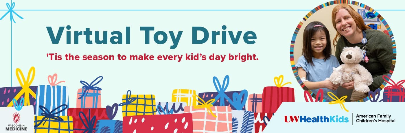 You can offer hope and healing to kids by generously supporting our virtual toy drive to benefit the Child Life Program. Your gift will provide comfort and joy to children when they receive care in our clinics, emergency room, or have extended hospital stays.
